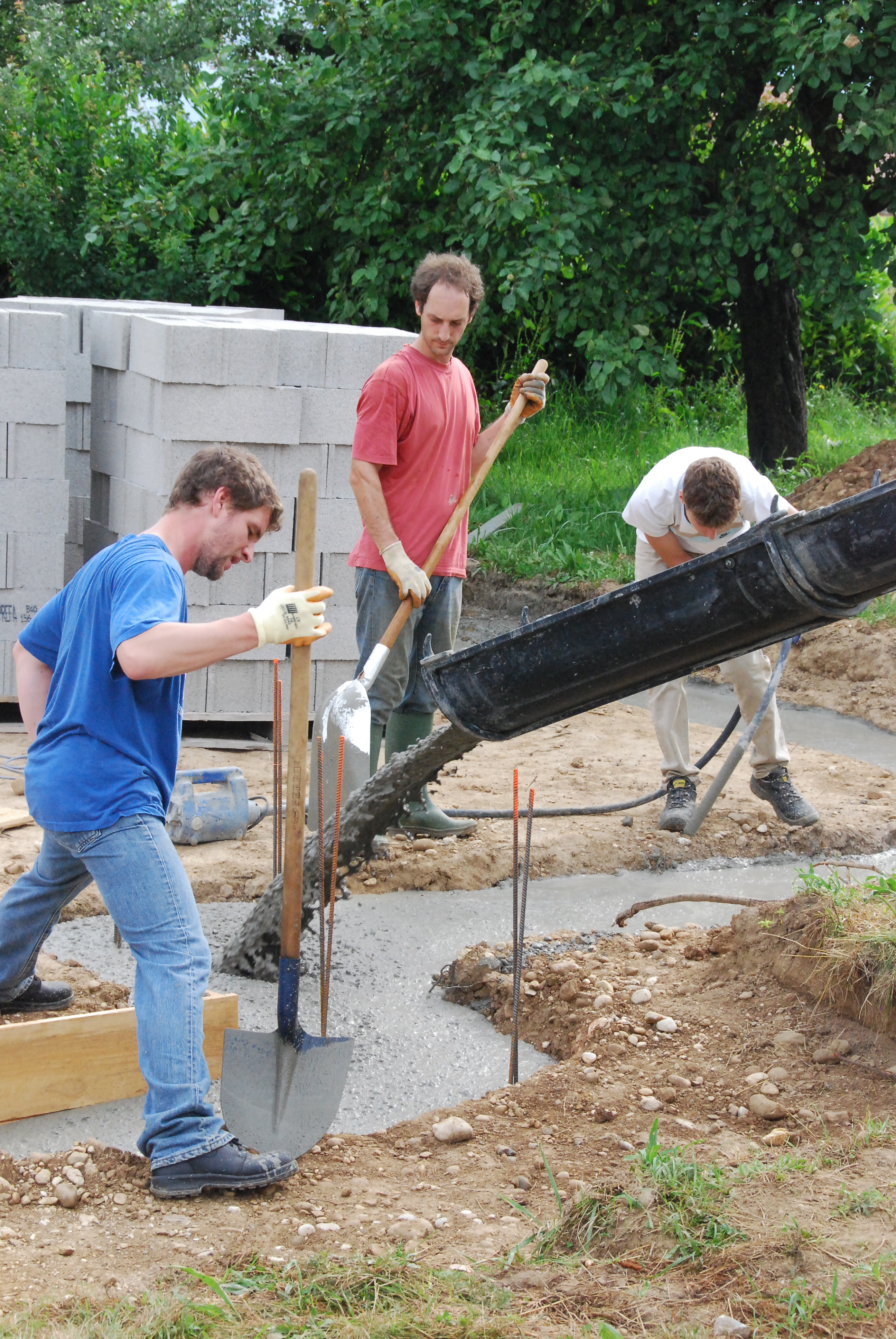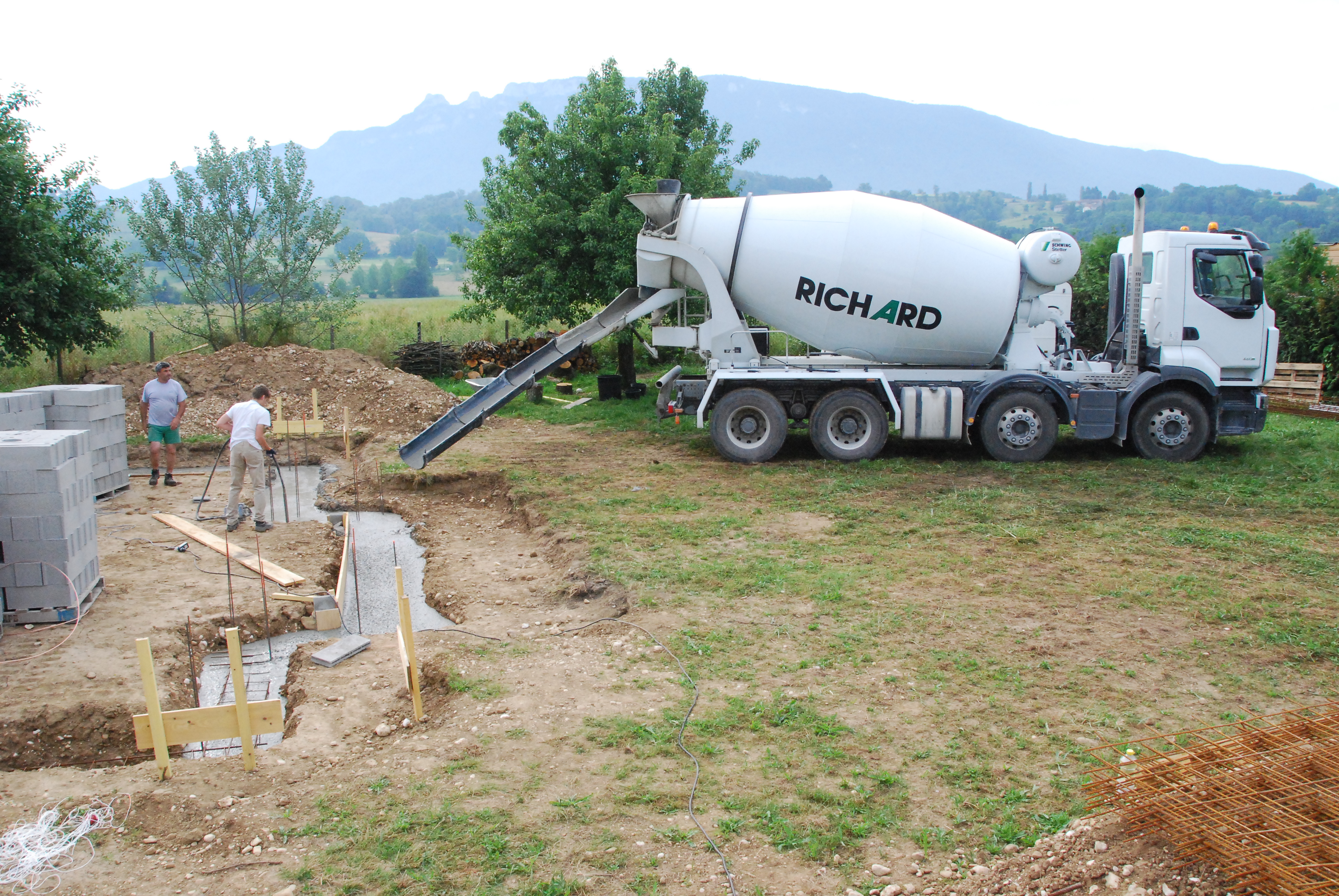 Mercredi 19 : Coulage des fondations avec l’aide de Michel et Max, merci à vous ! La toupie a pu s’avancer jusqu’à atteindre les fouilles au nord, donc on a avancé assez vite : 2h30.