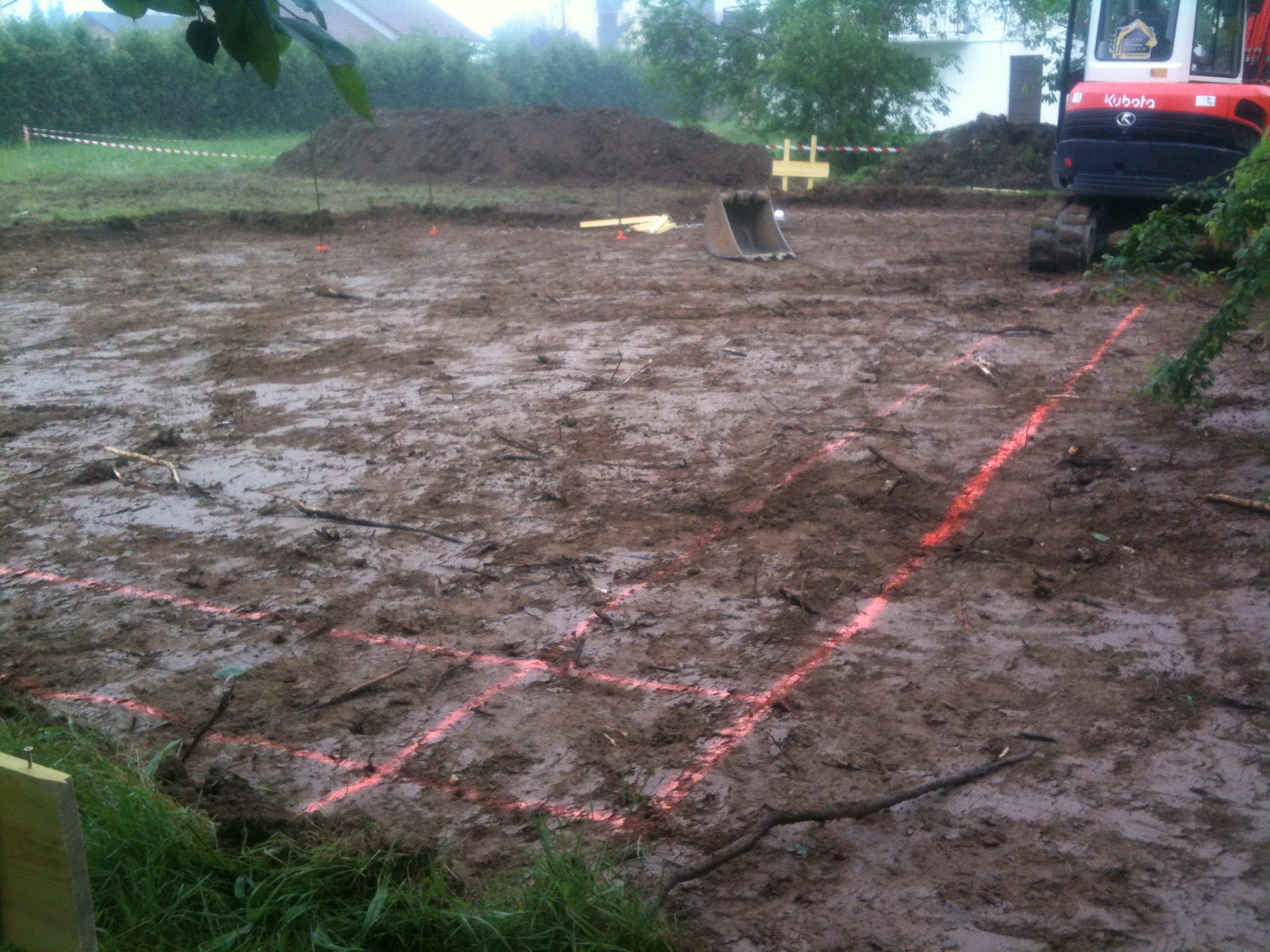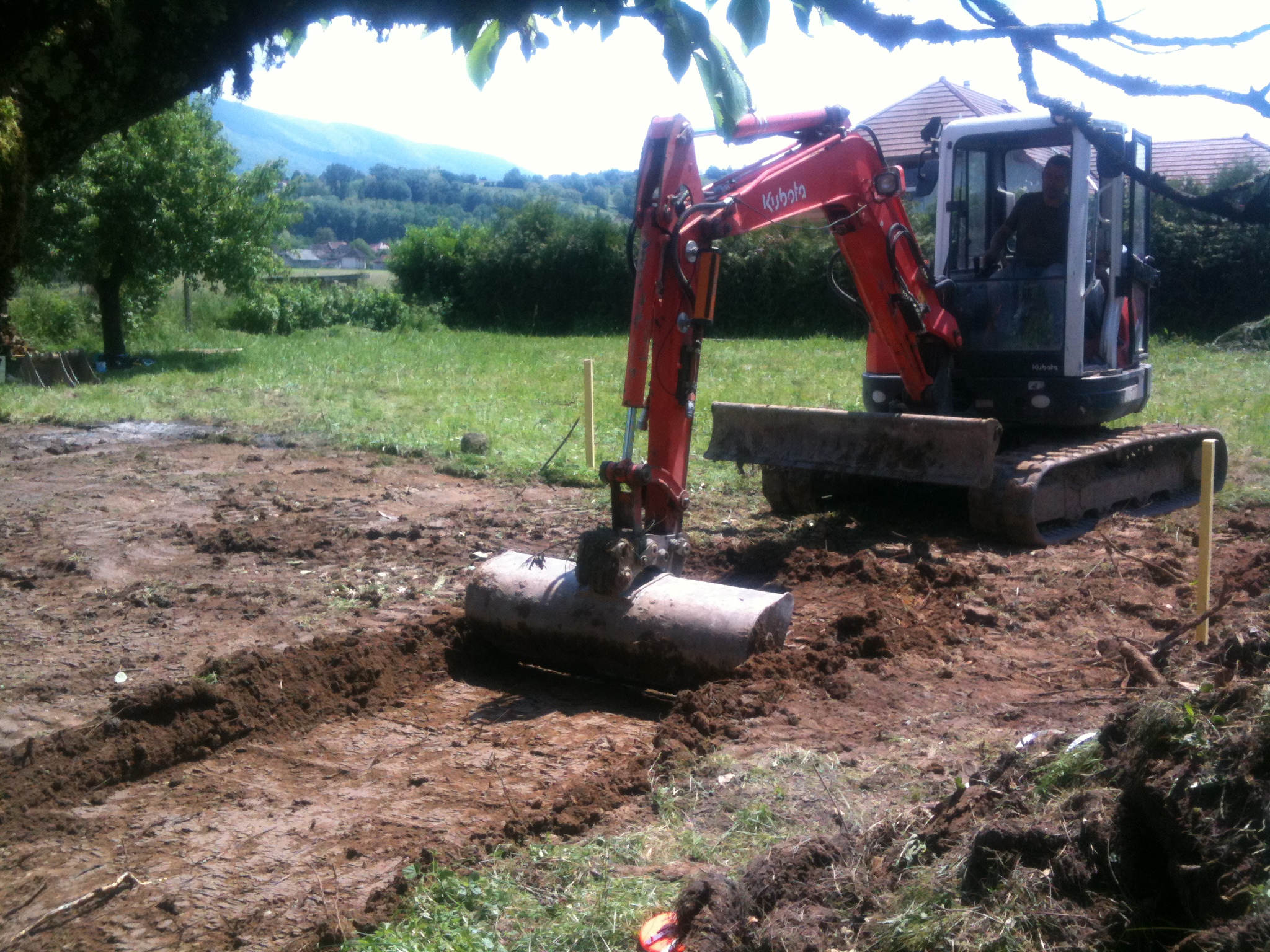Jeudi 6 et vendredi 7 : Décidé du jour au lendemain (et dans ce cas, ce n’est pas qu’une expression), le terrassier est venu faire la plateforme et creuser les fouilles. Et après 9h de boulot, nous avons une meilleure idée de la place que prendra la maison. Le terrassier a fait du bon travail… à nous maintenant.
