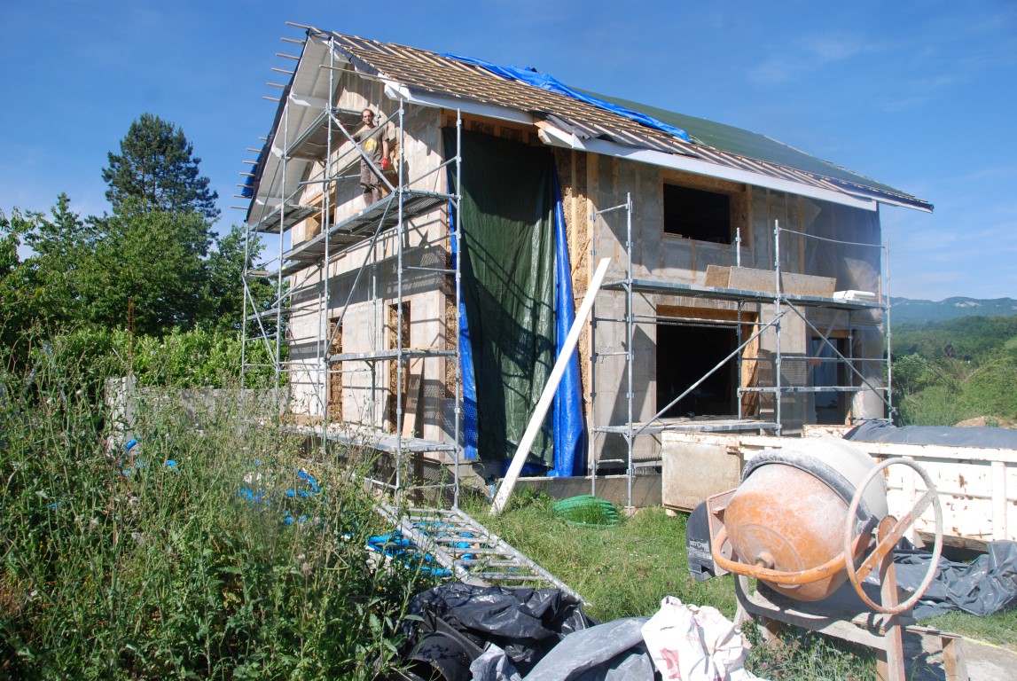 Joyeux anniversaire ! 1 an de travaux. Et voilà, ça fait déjà un an que nous avons commencé. Le mortier est terminé au nord, ouest, et les 3/4 du sud. Les fenêtres et portes sont prêtes, on a plus qu’à aller les chercher. Joyeux anniversaire maison !
