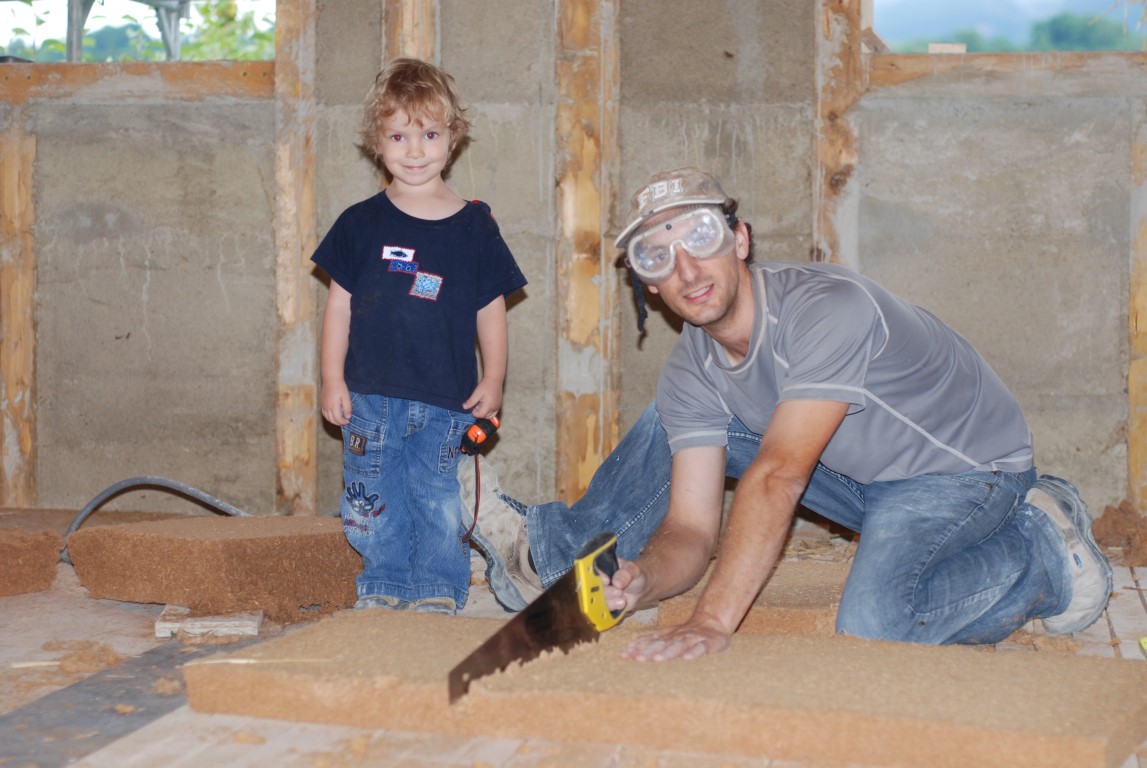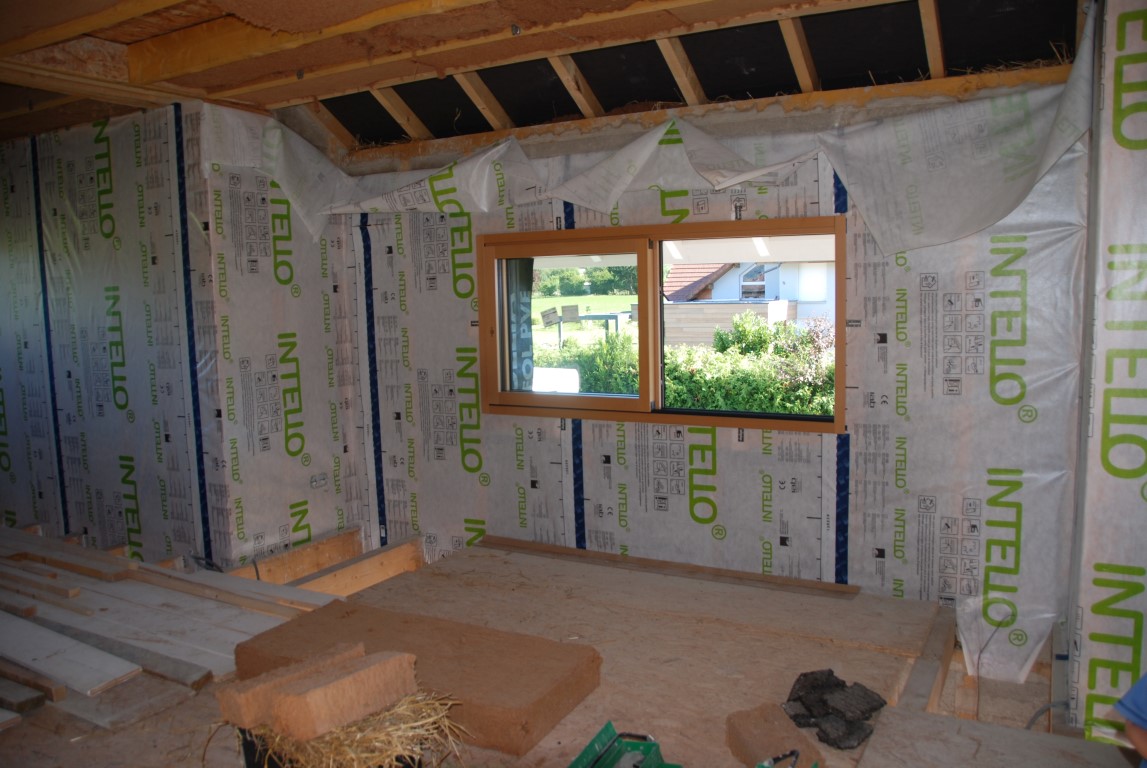 Depuis, l’intérieur de la maison a eu droit à un petit lifting; ménage, pose du pare-vapeur, de la fibre de bois pour l’isolation du plafond au premier et même des fenêtres!!!!