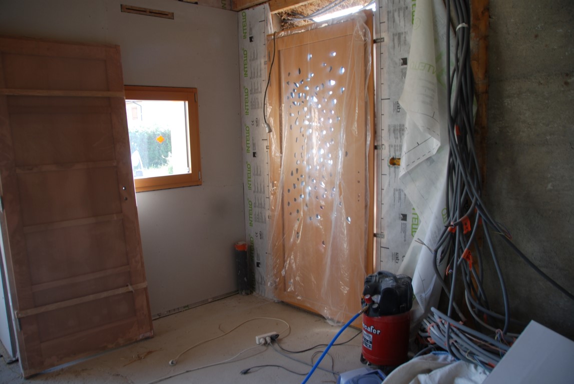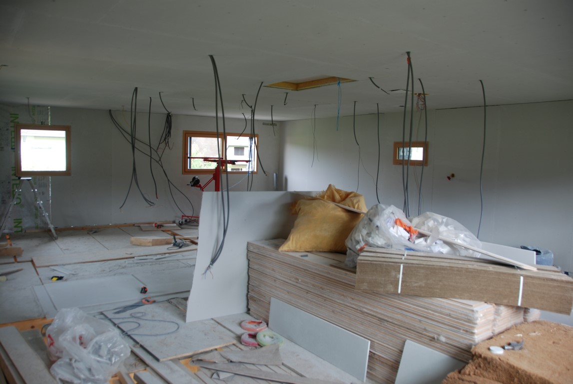 Le mois d’août fut consacré à la pose du Fermacel sur les murs GREB et sur le plafond du premier.