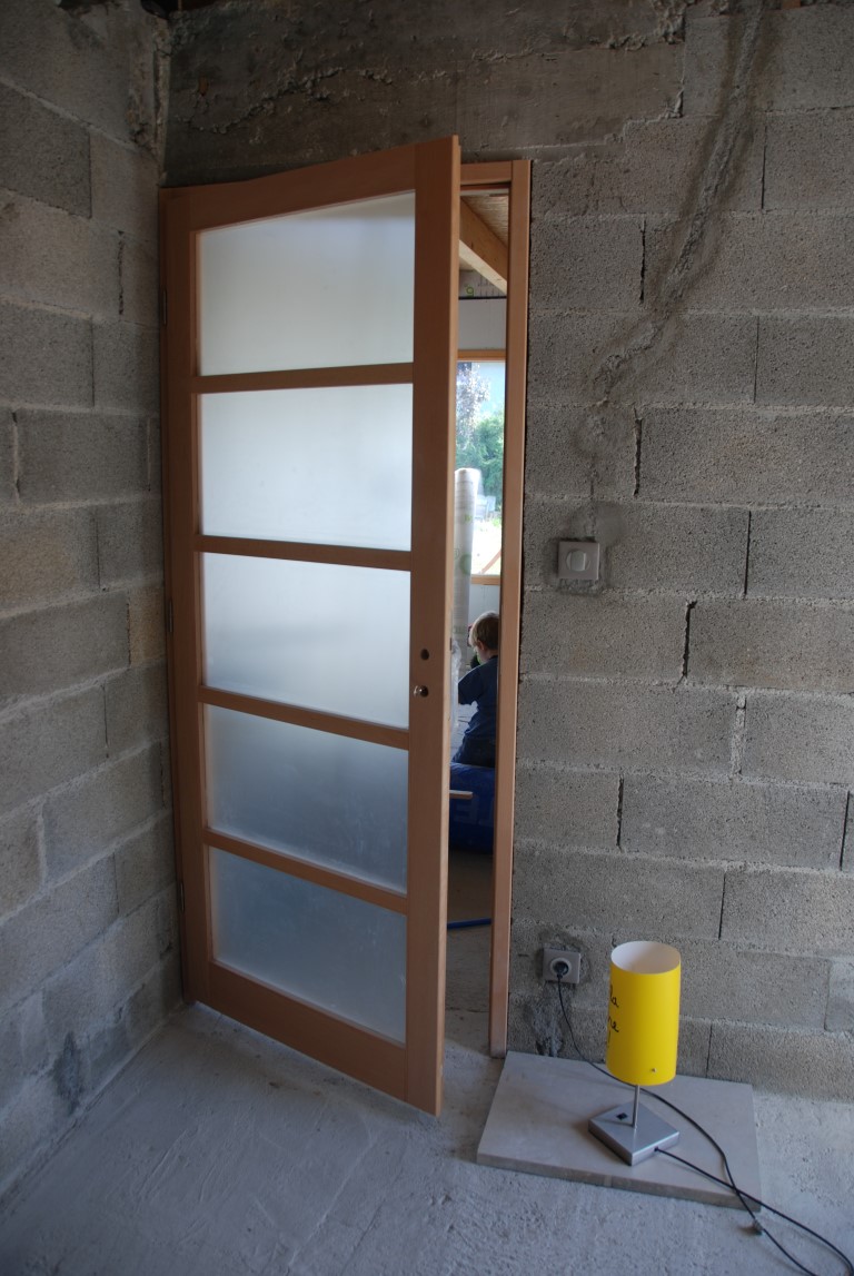 On a également « posé » la porte d’entrée. Il faudra y revenir car le mur n’est pas d’aplomb.