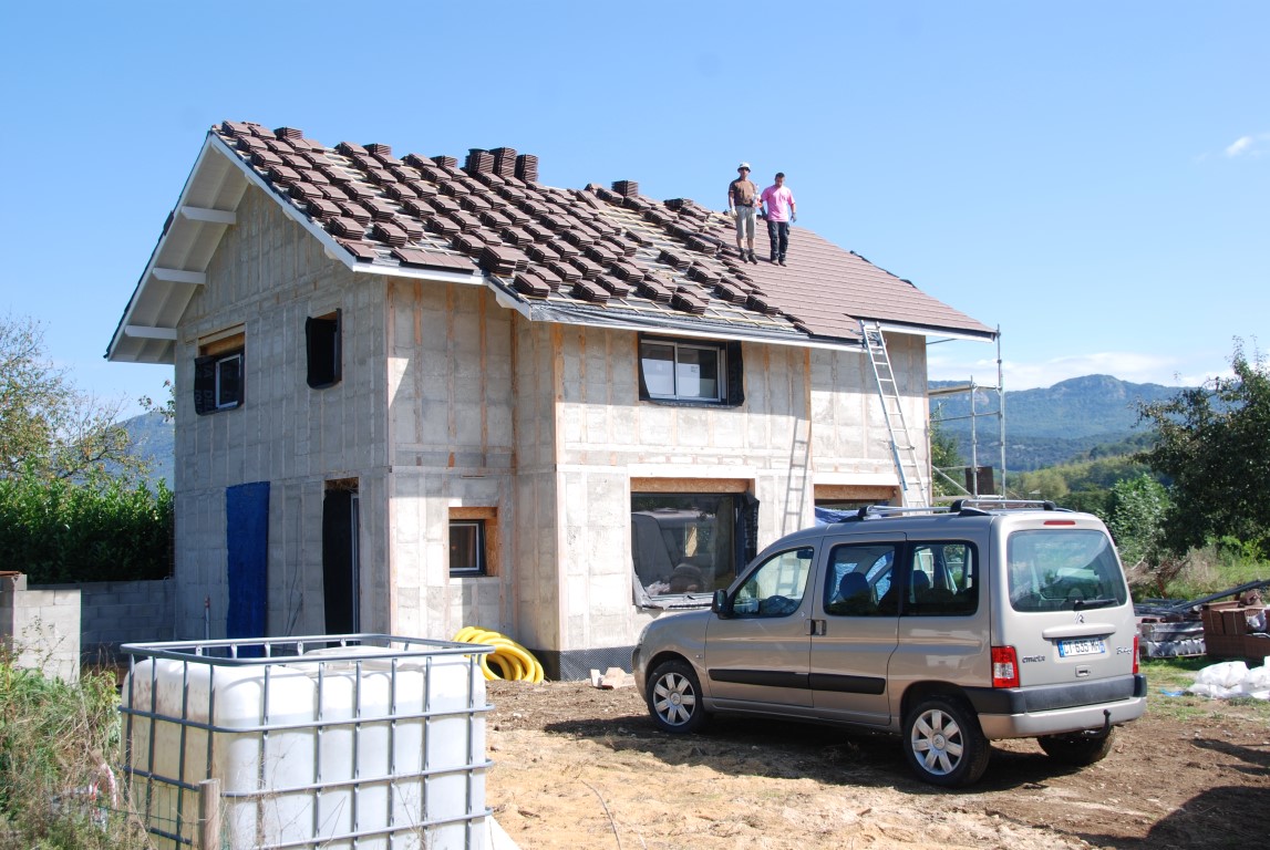 (Il y a une fuite là où on a pas posé de Fermacel… On attend les tuiles.)